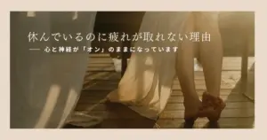 休んでいるのに疲れが取れない理由|心と神経の切り替えができていないサイン 週末はゆっくり過ごしたはずなのに、月曜日になっても体が重い。十分な睡眠時間をとっているのに、朝から疲れが残っている。 そんな状態が続くと、「もっと休まなきゃい...
